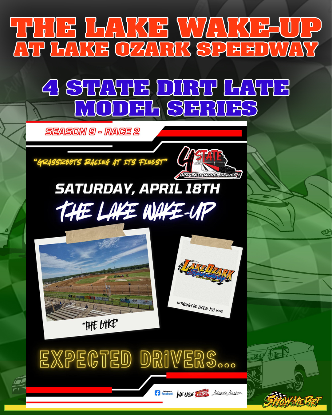 🏁 THIS Saturday, April 18th — 4 State Dirt Late Model Series at Lake Ozark Speedway! 🏁 It’s time for “The Lake Wake-Up” and we are SO ready to bring …