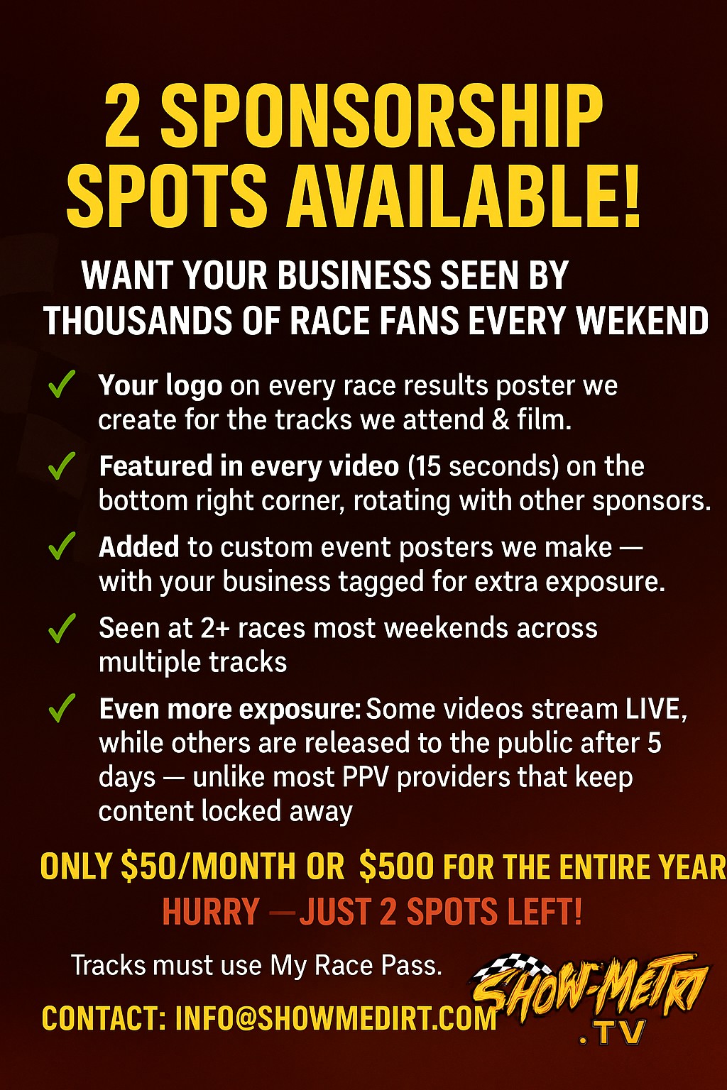 Home Uncategorized2 Sponsorship Spots Available! Want your business seen by thousands of race f…