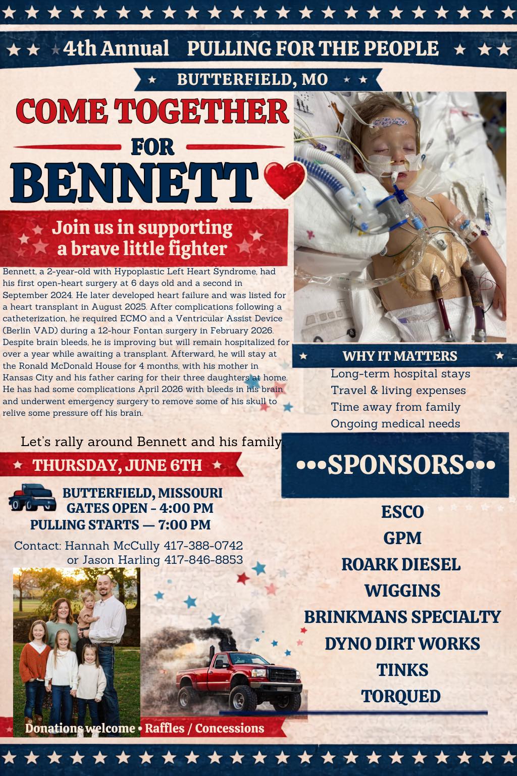 This pull is for a very very special boy that needs a new heart and won’t be able to leave the hospital in KC til he gets one.