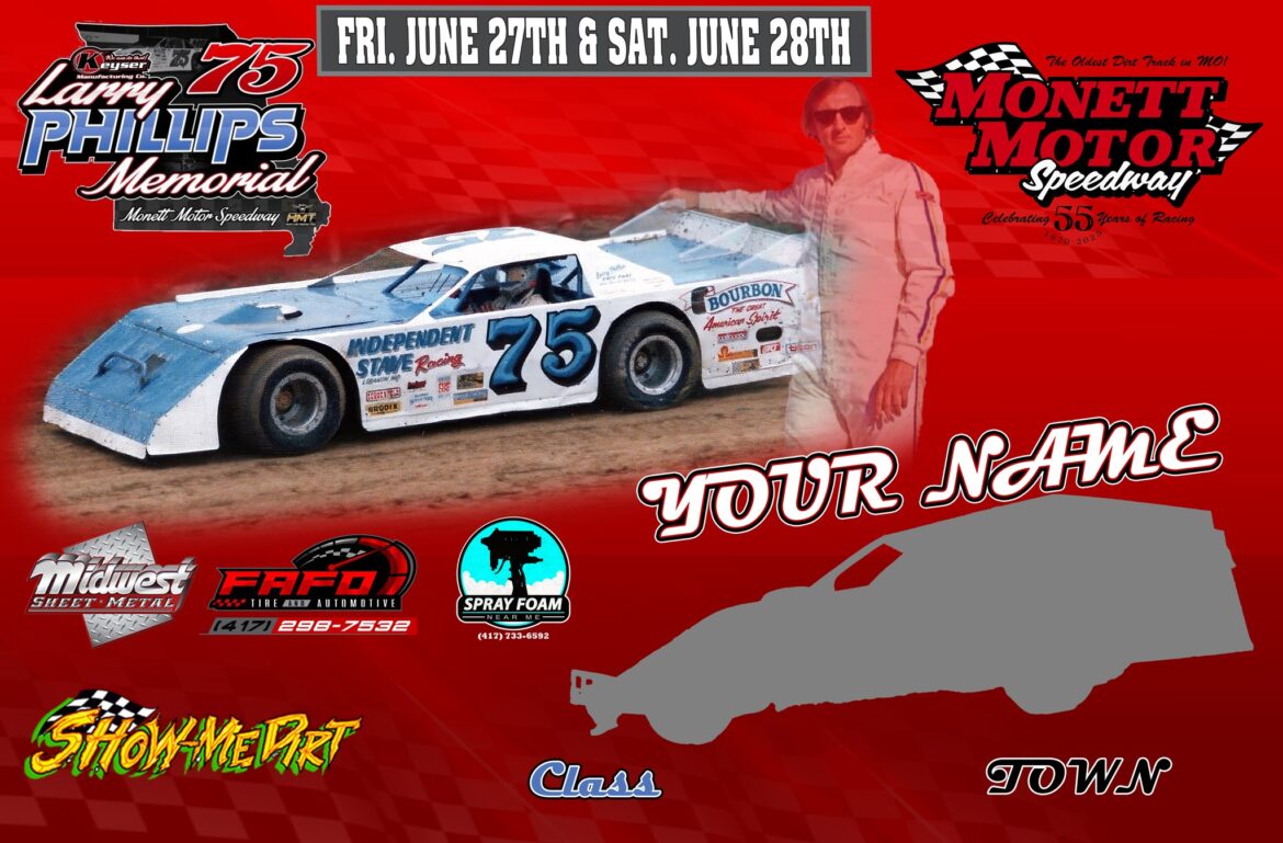 Are you planning to attend the Larry Phillips Memorial at Monett Motor Speedway on June 27th and 28th, 2025? If so, we would be thrilled to create a poster featuring your car for you to share, letting the world know you’ll be present.