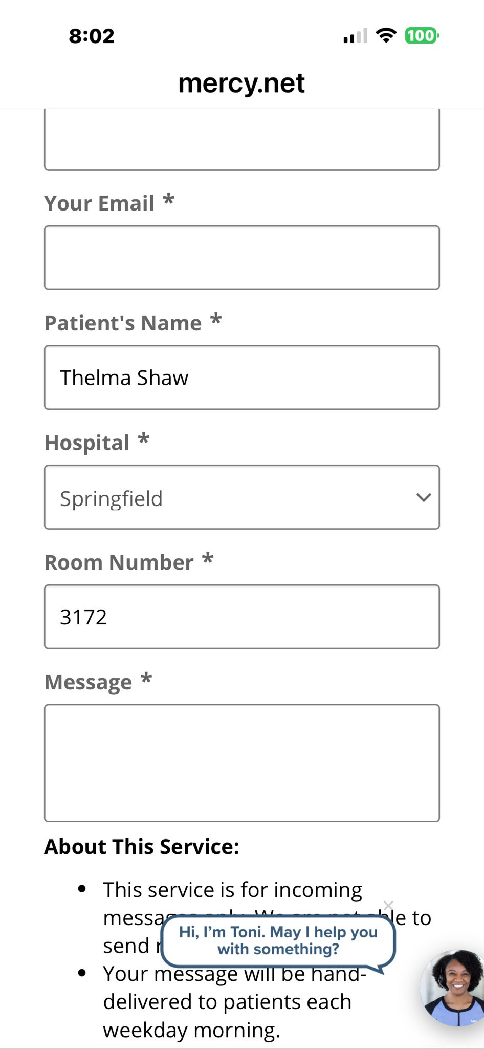 Here is the website and all the info to input in the second photo so she would get it. https://www.mercy.net/forms/email-a-patient/