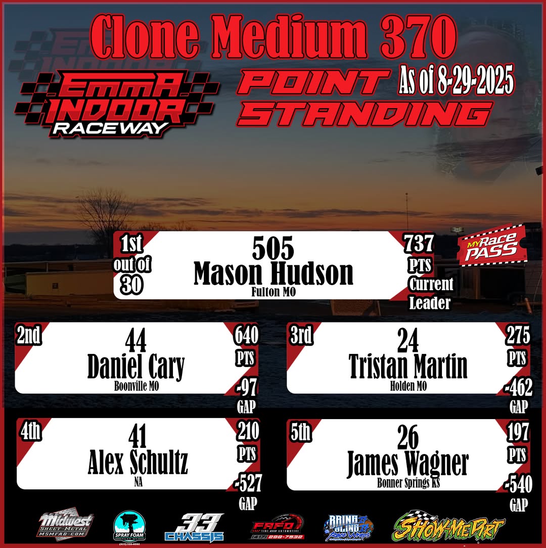 ✅ Monthly updates starting with the Emma Indoor Raceway 2025-2026 season