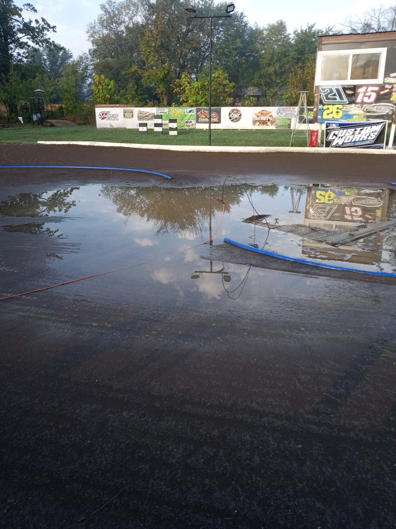 Well everyone we’ve tried hard. We got the track drained off but it looks like the Boogieman tricked us. Unfortunately we’re gonna have to CANCEL today’s race and reschedule for next Saturday, October 25th. But hey it gives ya some extra time to get those hot rods ready to go.