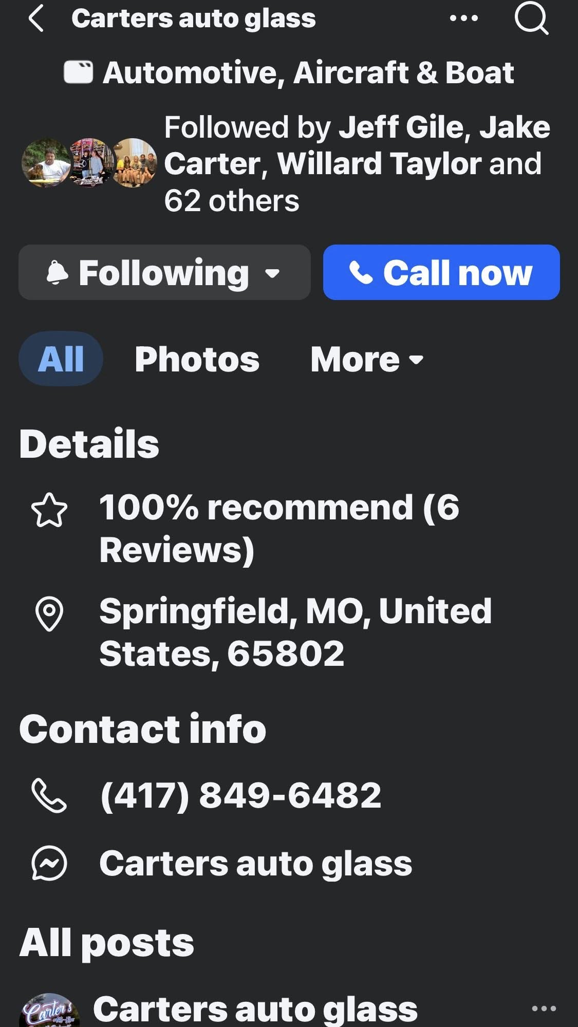 Carters auto glass is the place to call if you need that auto glass replaced. Let him know I sent you Jake Carter.