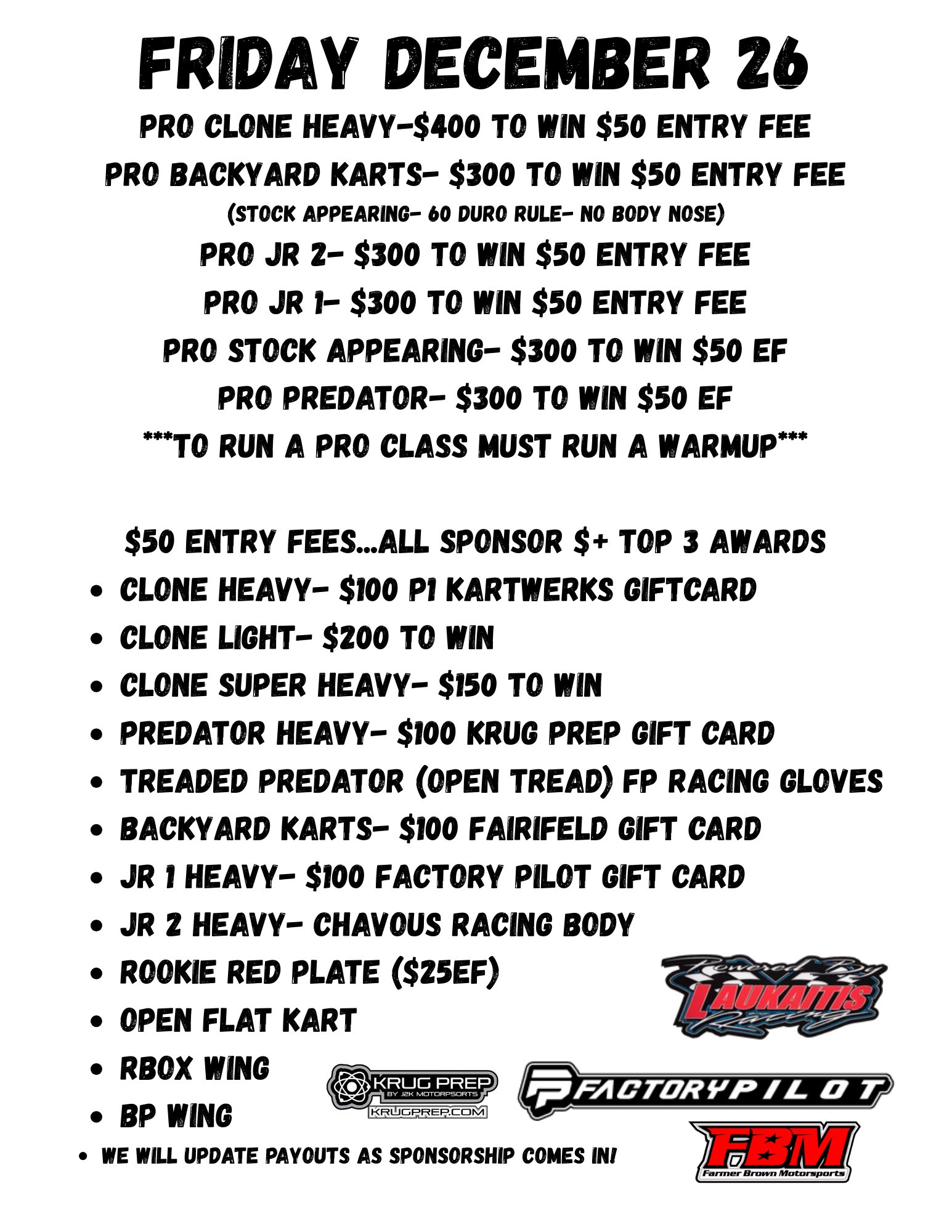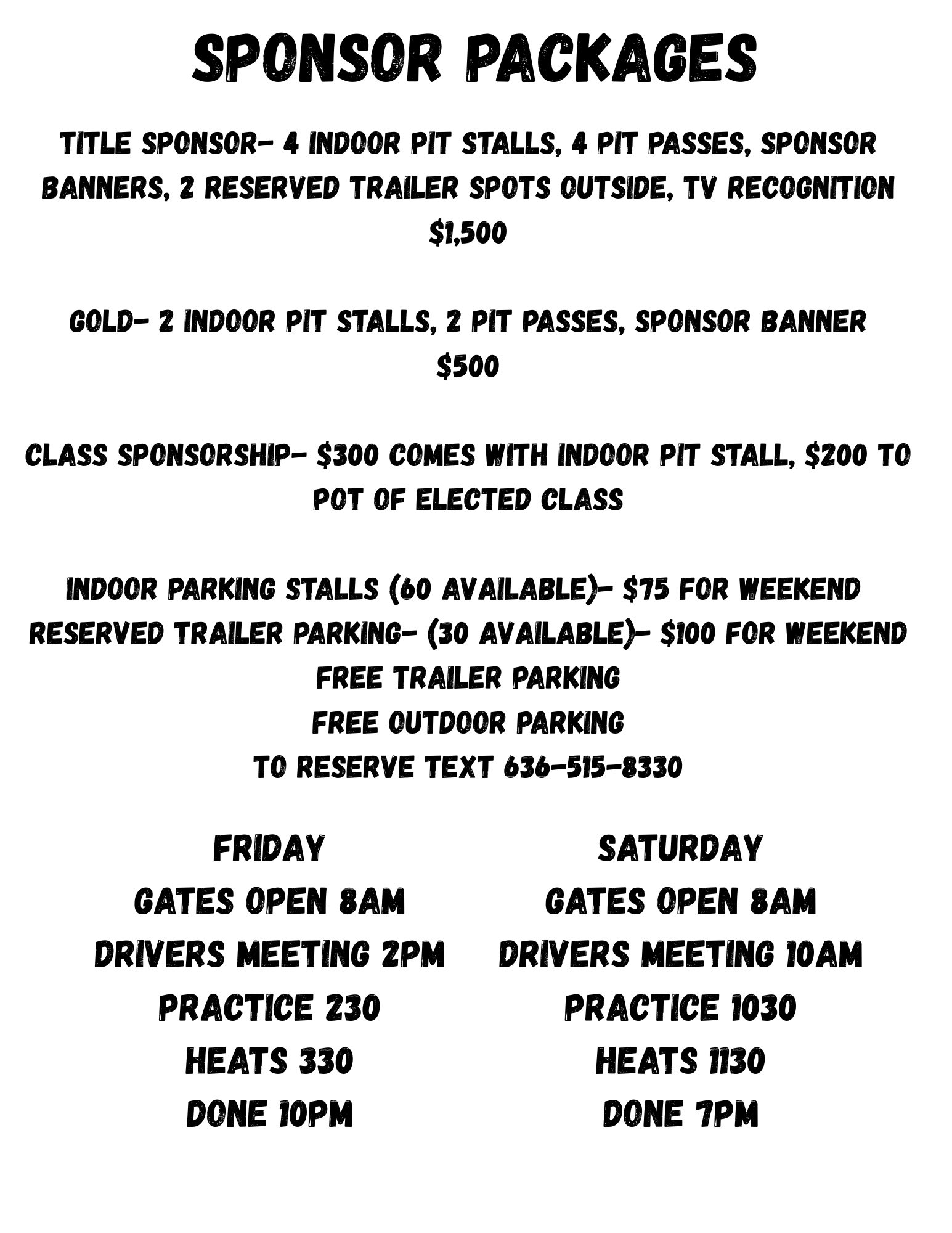 Gates Open 8AM | Drivers Meeting 10AM | Practice 10:30 | Heats 11:30 | Done 6PM
