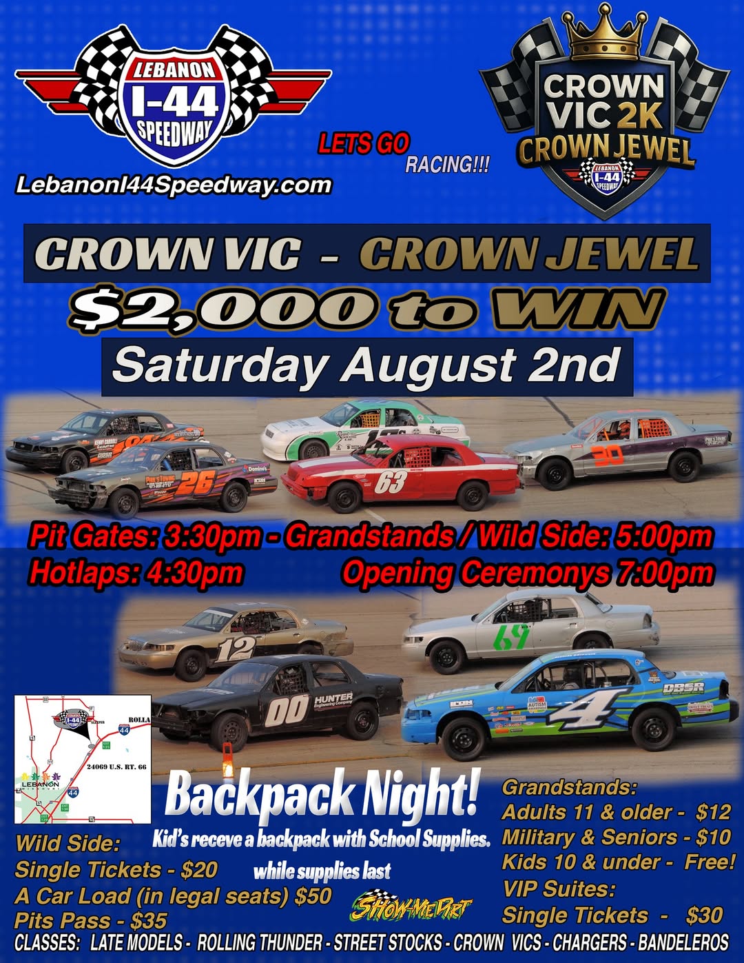 Don’t forget it, the CROWN VIC – CROWN JEWEL $2000 to WIN tomorrow night at the Lebanon I-44 Speedway, we hope to see you there. If you can’t make it, we have you covered over at www.showmedirt.tv