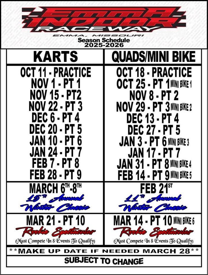 π 2/7/2026 – Emma Indoor Raceway on My Race Pass