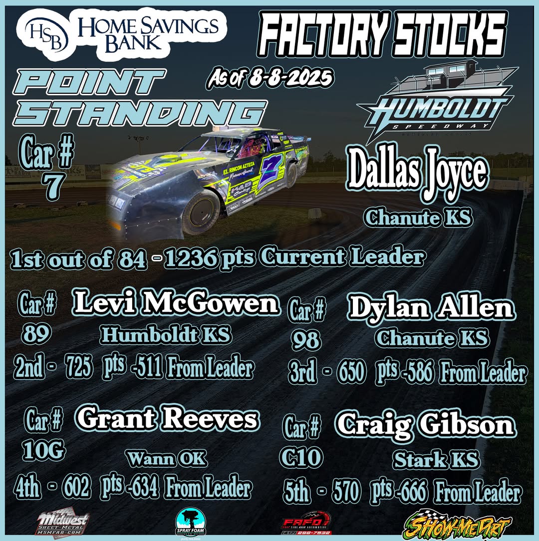 Humboldt Speedway Home Savings Bank Factory Stocks Full Points Standings As of 8…
