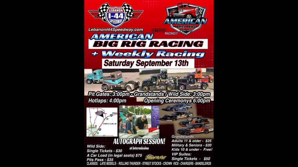 It’s finally time! American Big Rig Racing is coming to I-44 this Saturday night!