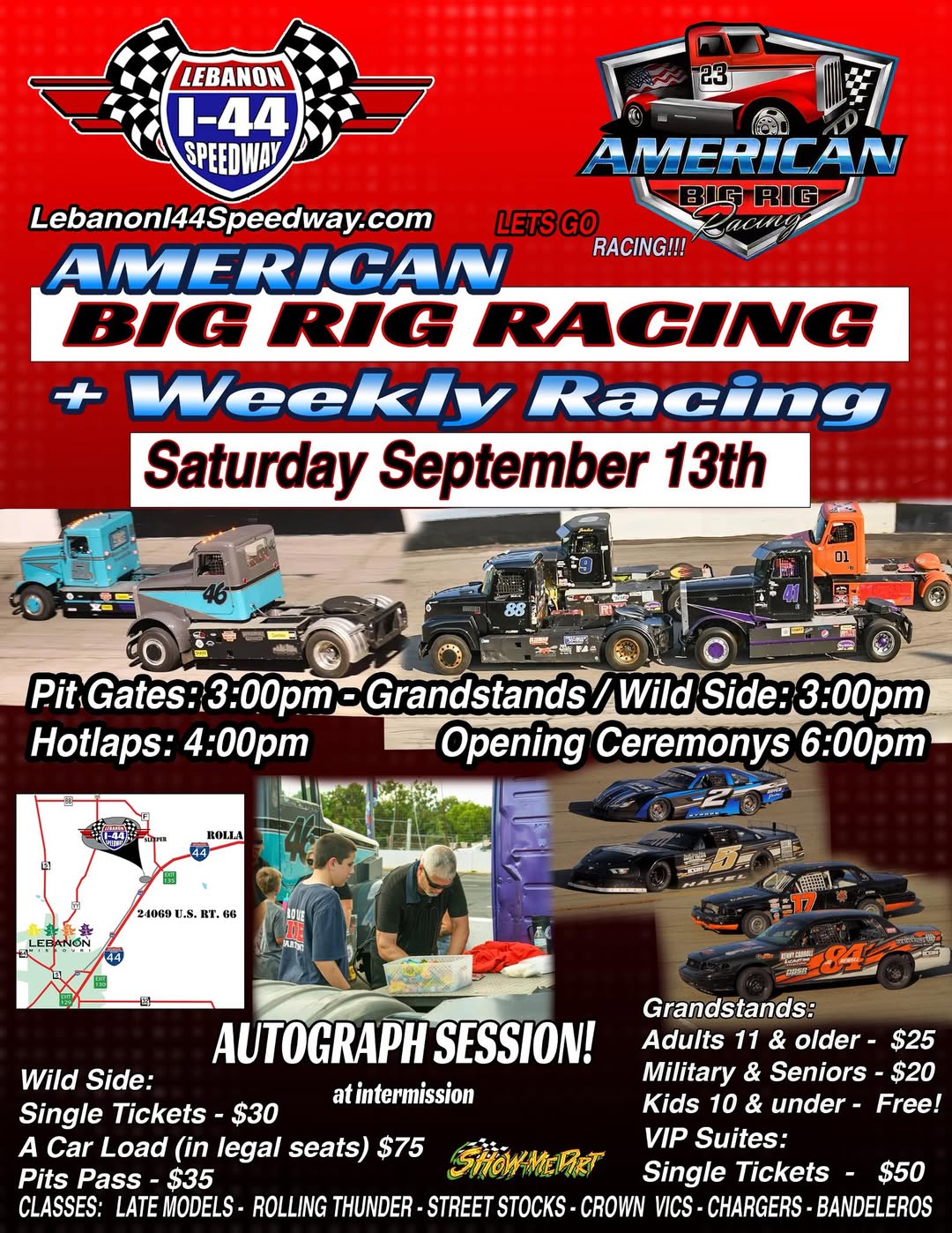 “It’s getting closer every day! Get ready for a great night of American Big Rig Racing. Autograph session, fun activities for the kids, and exciting racing in all classes. Don’t miss it!”