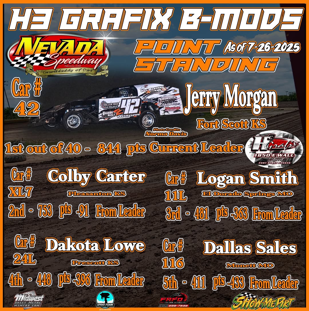 1 42 Jerry Morgan Fort Scott KS 844 –