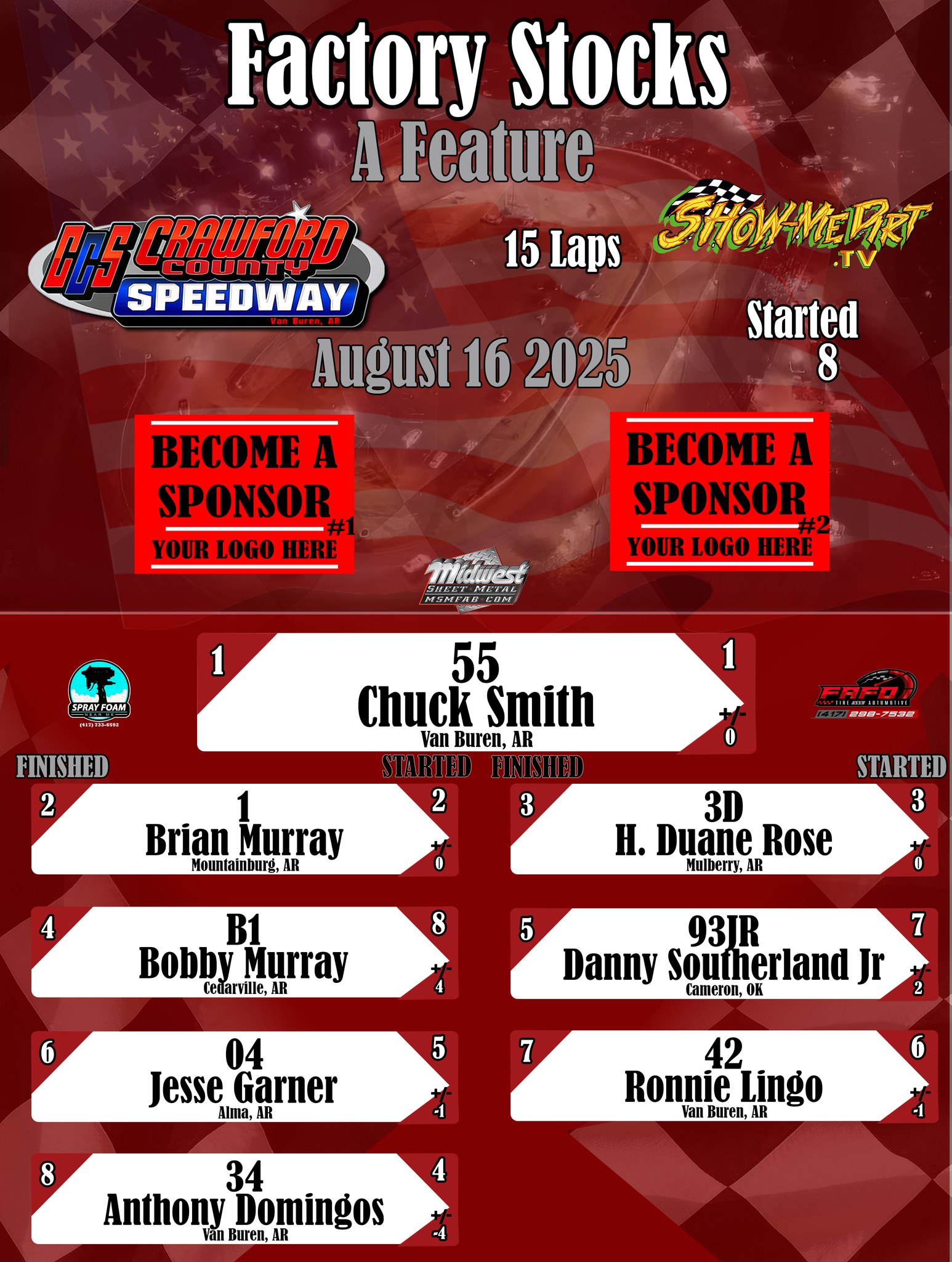 π 8/16/2025 – Crawford County Speedway on My Race Pass