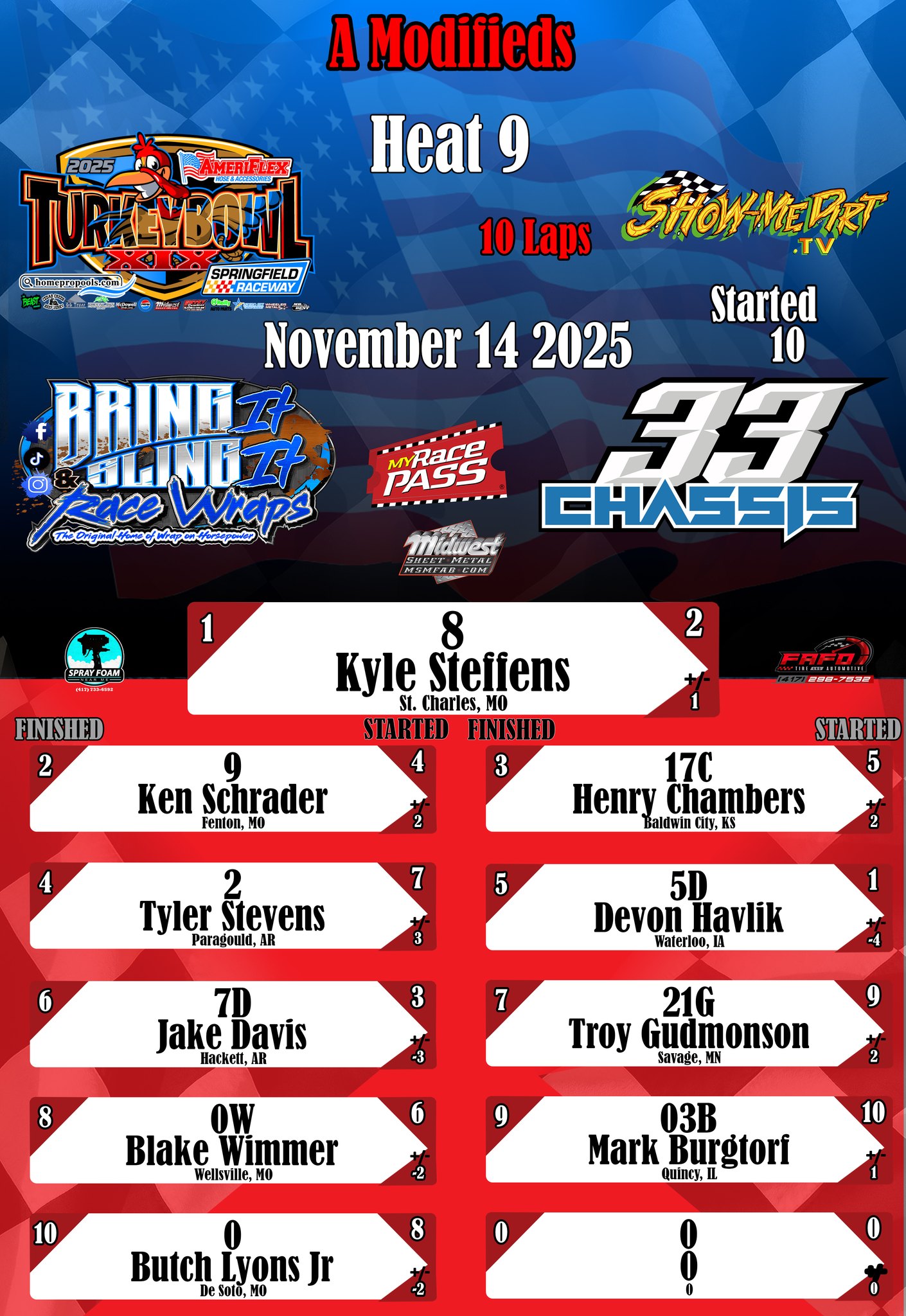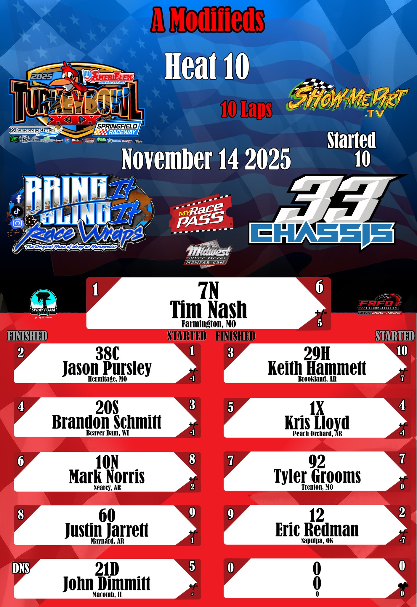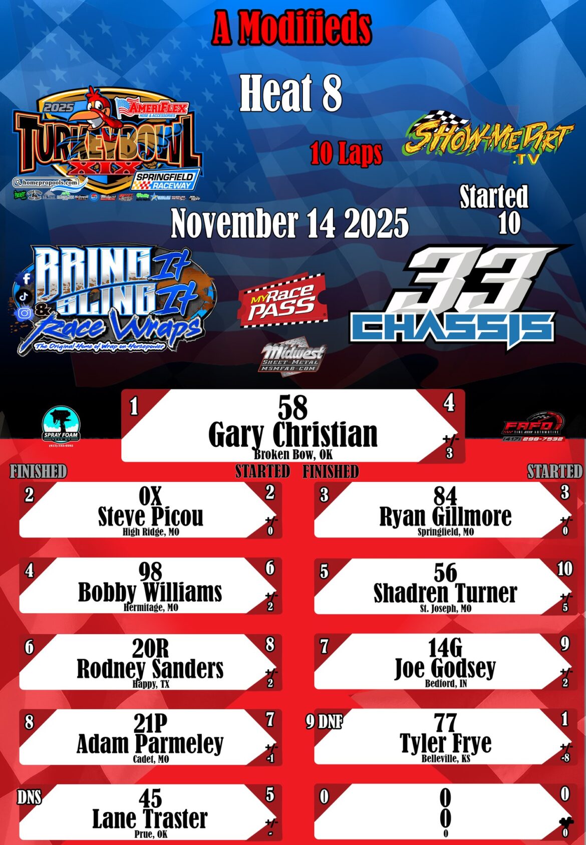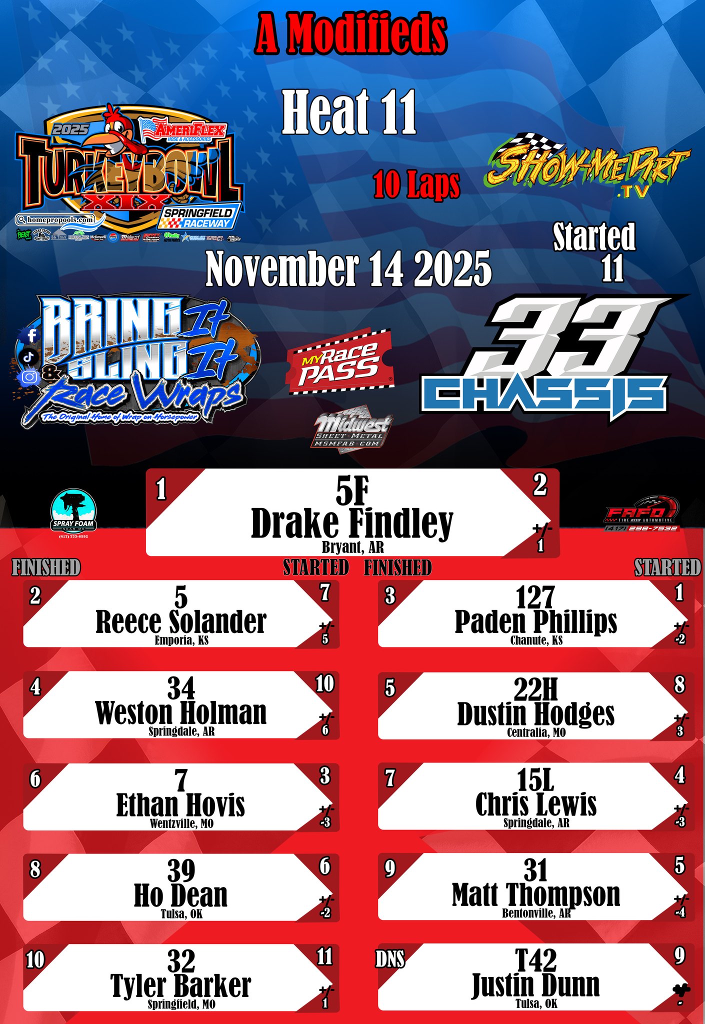 #DirtTrackRacing #LocalRacing #RaceResults #MyRacePass #ShowMeDirt #MidwestSheetMetal #SprayFoamNearMe #FAFOTireandAuto #BringItAndSlingIt #WrapOnHorsepower #33Chassis #11142025 #SpringfieldRacewayonMyRacePass #AModifieds