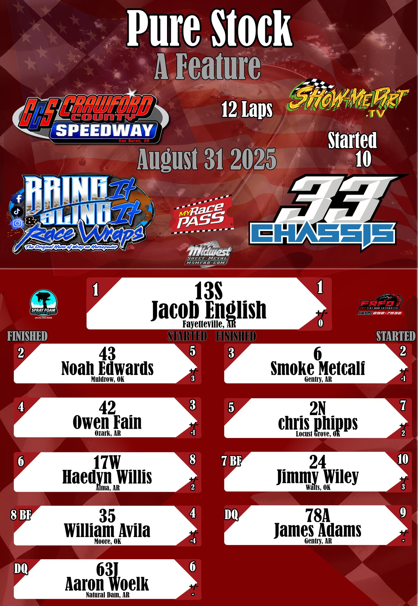 π 8/31/2025 – Crawford County Speedway on My Race Pass