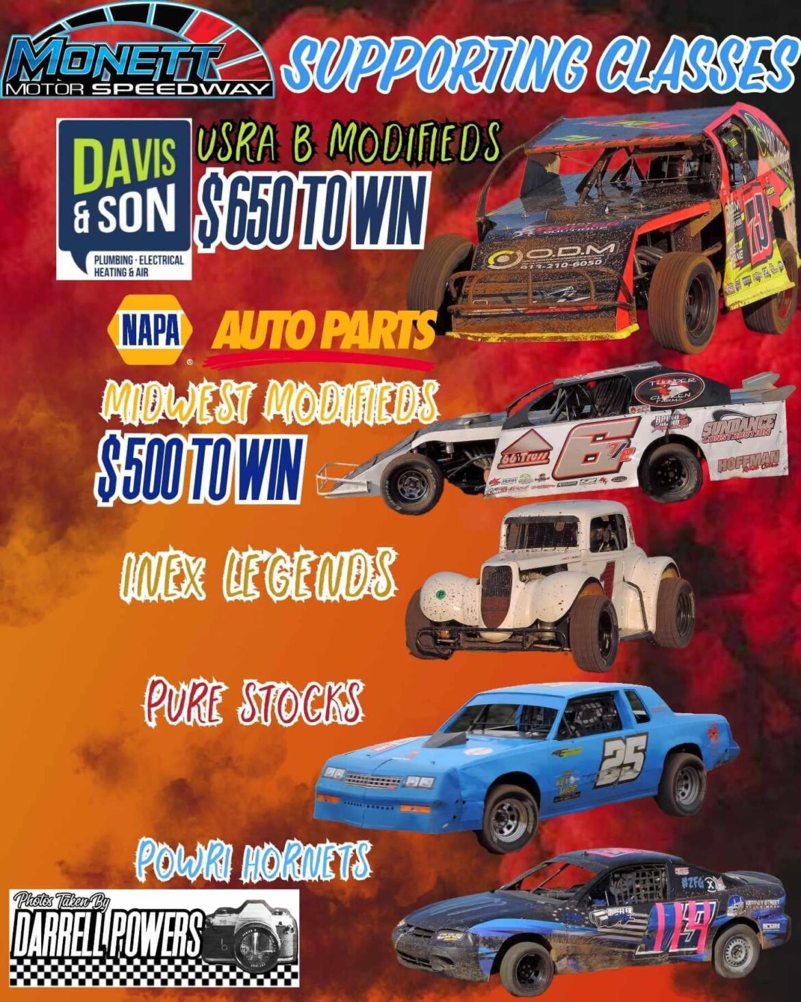 Tonight we are headed back to Monett Motor Speedway 📍 Added money tonight for the BMOD’S 💵 information on times are below on the photo🔽🔽