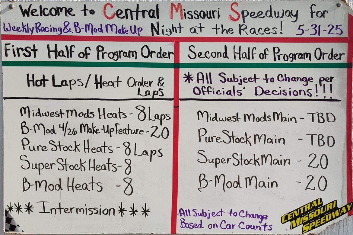 Here’s our lineup for tonight Lebanon Midway Speedway