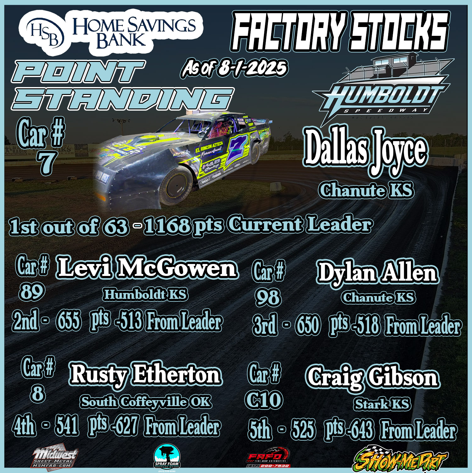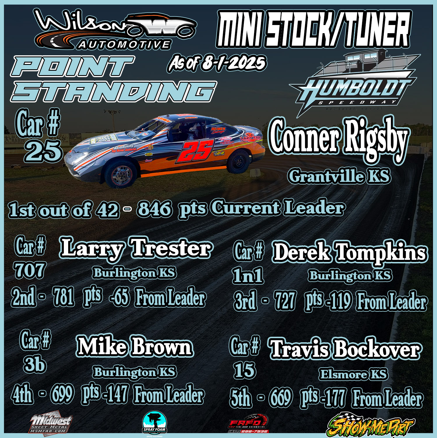 Final points standings for the Humboldt Speedway for the 2025 year. Congrats to all the points leaders. I hope to make a trip there next year at least once.