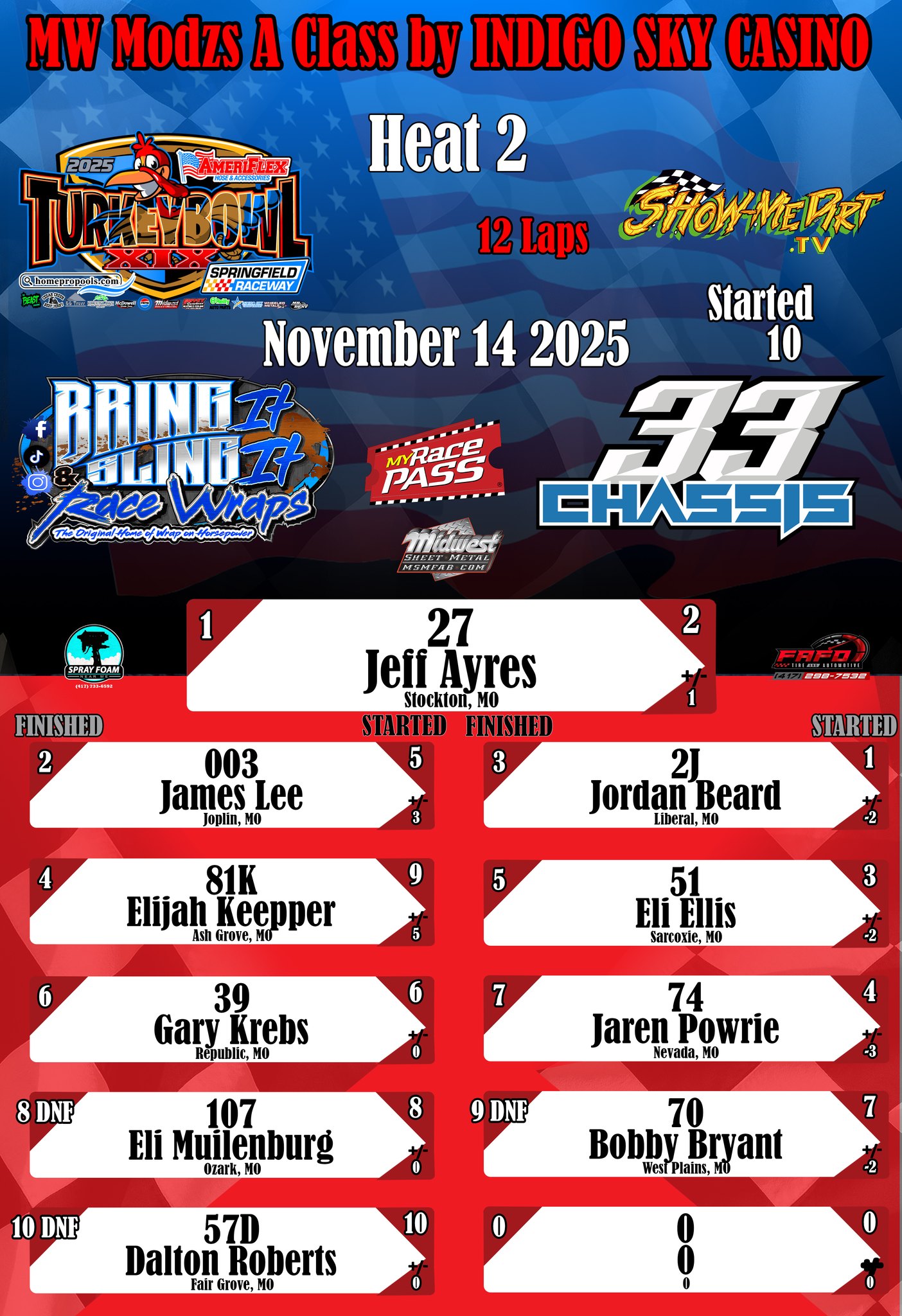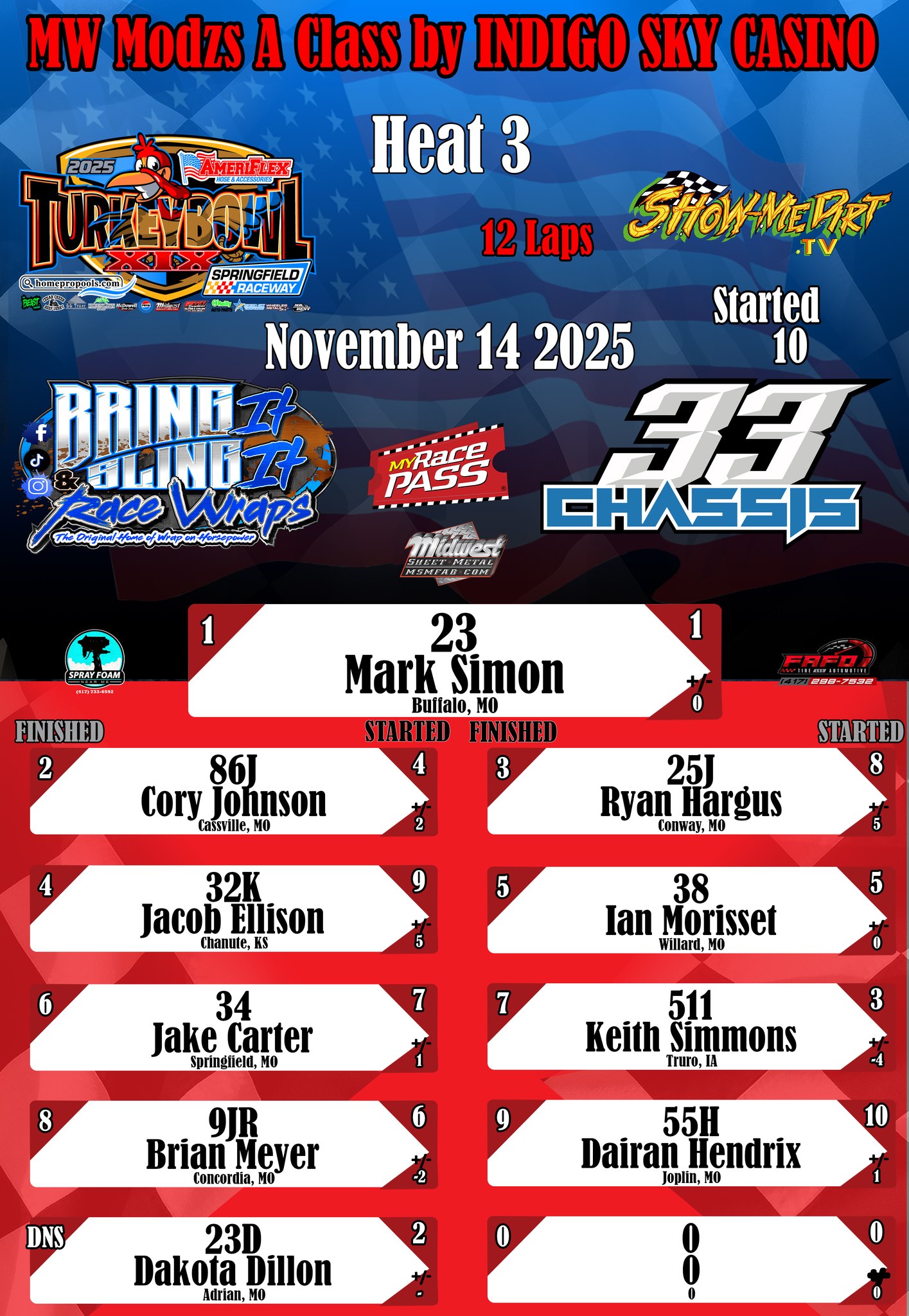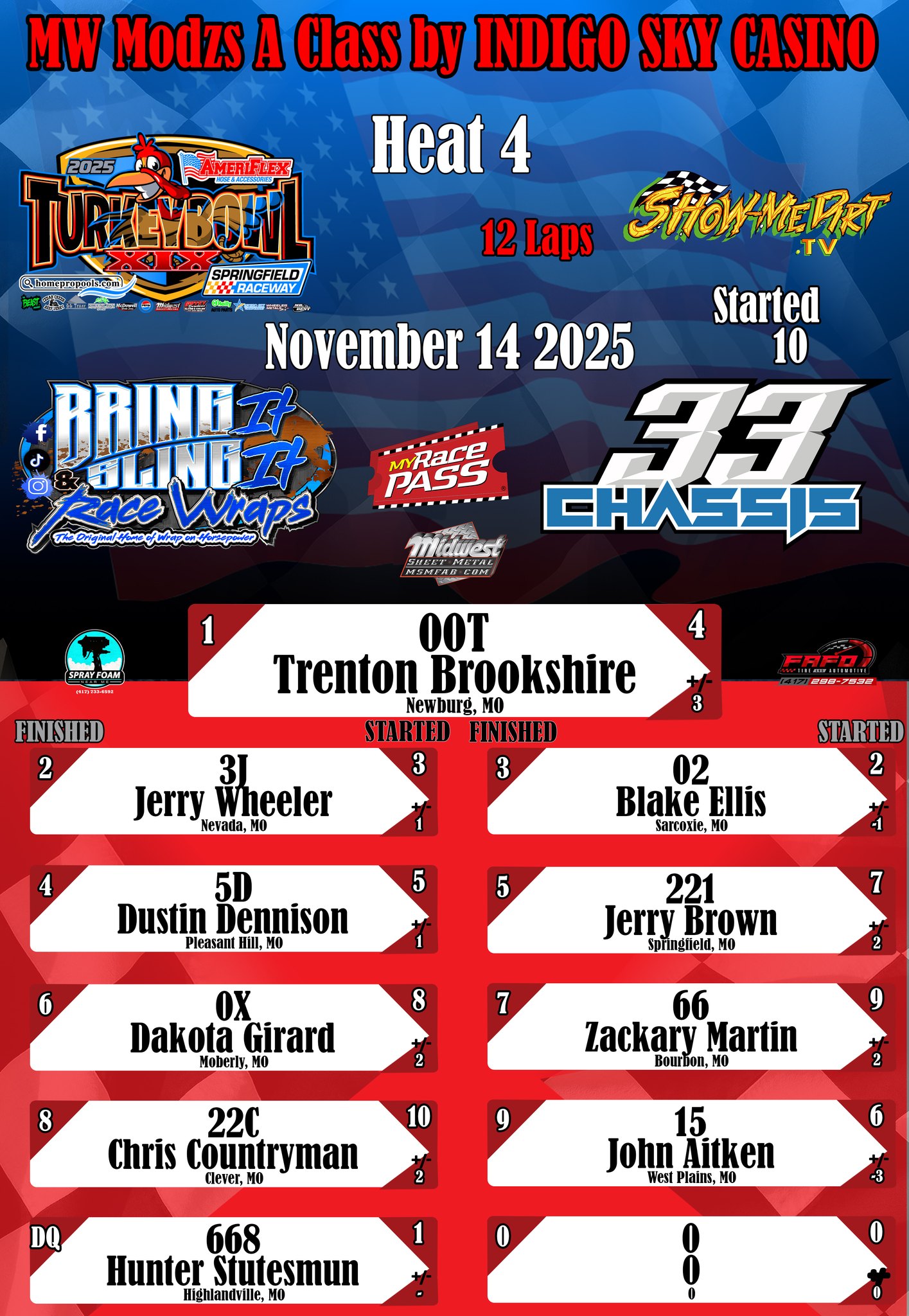 #DirtTrackRacing #LocalRacing #RaceResults #MyRacePass #ShowMeDirt #MidwestSheetMetal #SprayFoamNearMe #FAFOTireandAuto #BringItAndSlingIt #WrapOnHorsepower #33Chassis #11152025 #SpringfieldRacewayonMyRacePass #MWModzsAClassbyINDIGOSKYCASINO
