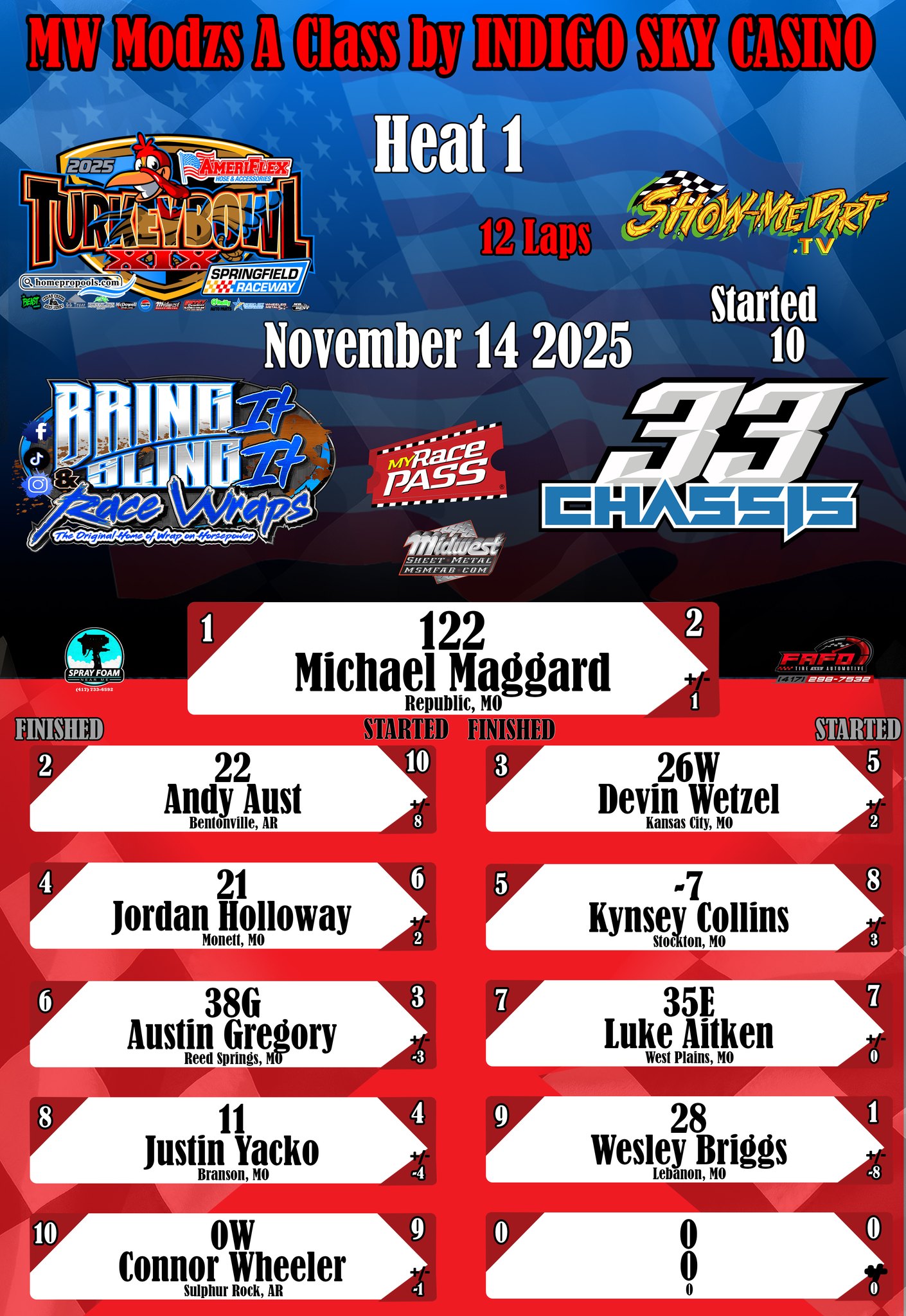 #DirtTrackRacing #LocalRacing #RaceResults #MyRacePass #ShowMeDirt #MidwestSheetMetal #SprayFoamNearMe #FAFOTireandAuto #BringItAndSlingIt #WrapOnHorsepower #33Chassis #11152025 #SpringfieldRacewayonMyRacePass #MWModzsAClassbyINDIGOSKYCASINO