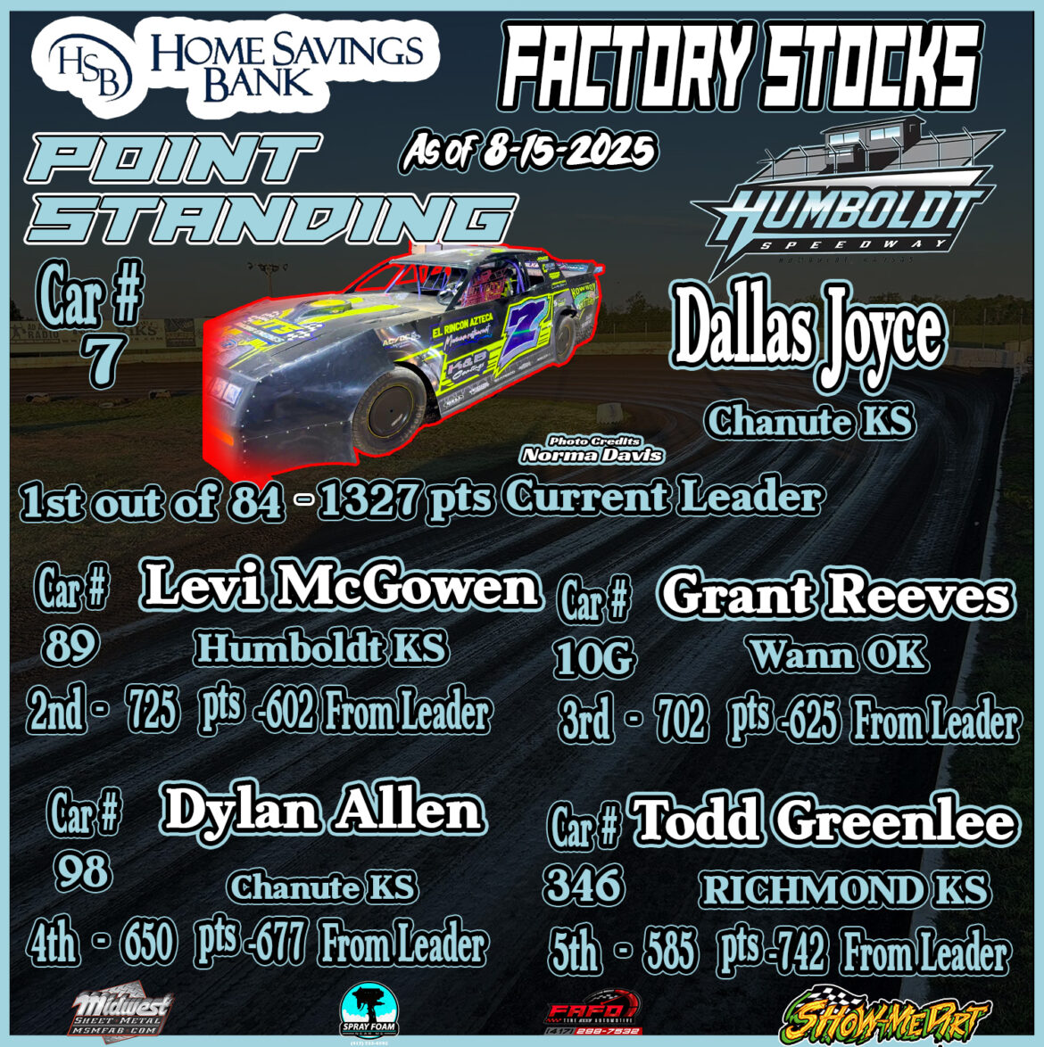 Final points standings for the Nevada Speedway for the 2025 year. Thair is still more racing at the track, just not for points. Congrats to all the points leaders. I hope to make a trip there at least once next year.