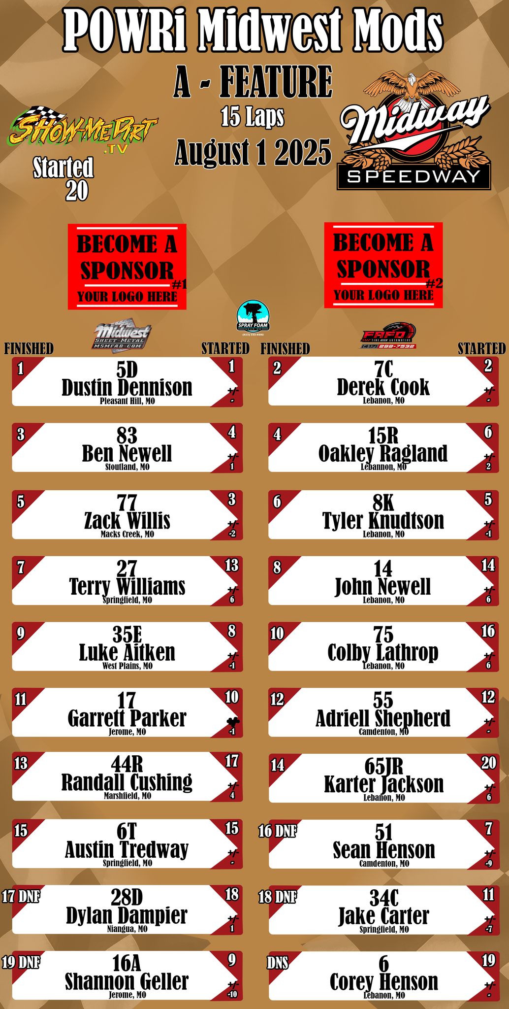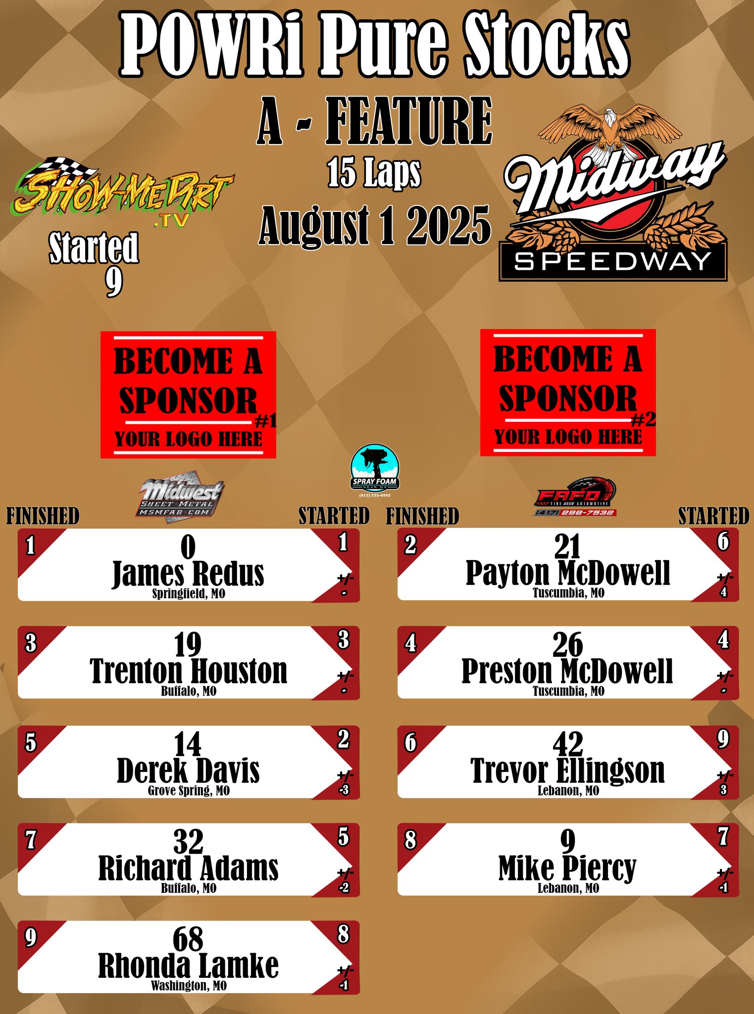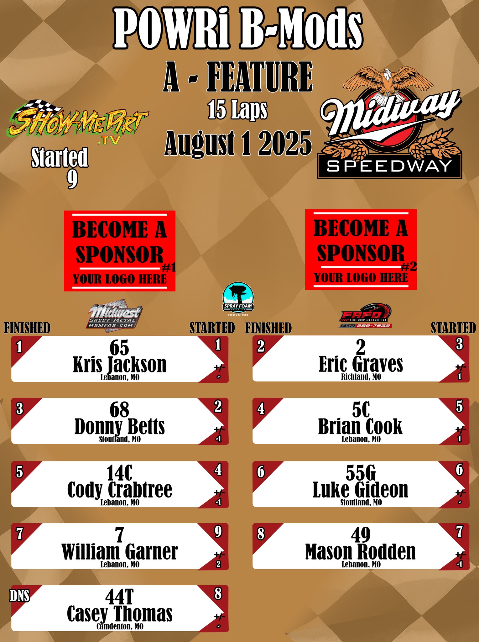 This example features a new design for the Racing Results at Lebanon Midway Speedway from this weekend.