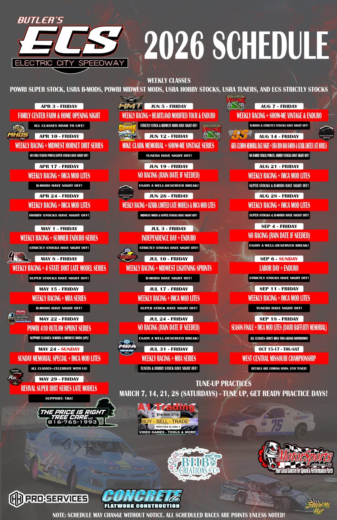 2026 Schedule for the Electric City Speedway Be sure to share with all your frie…