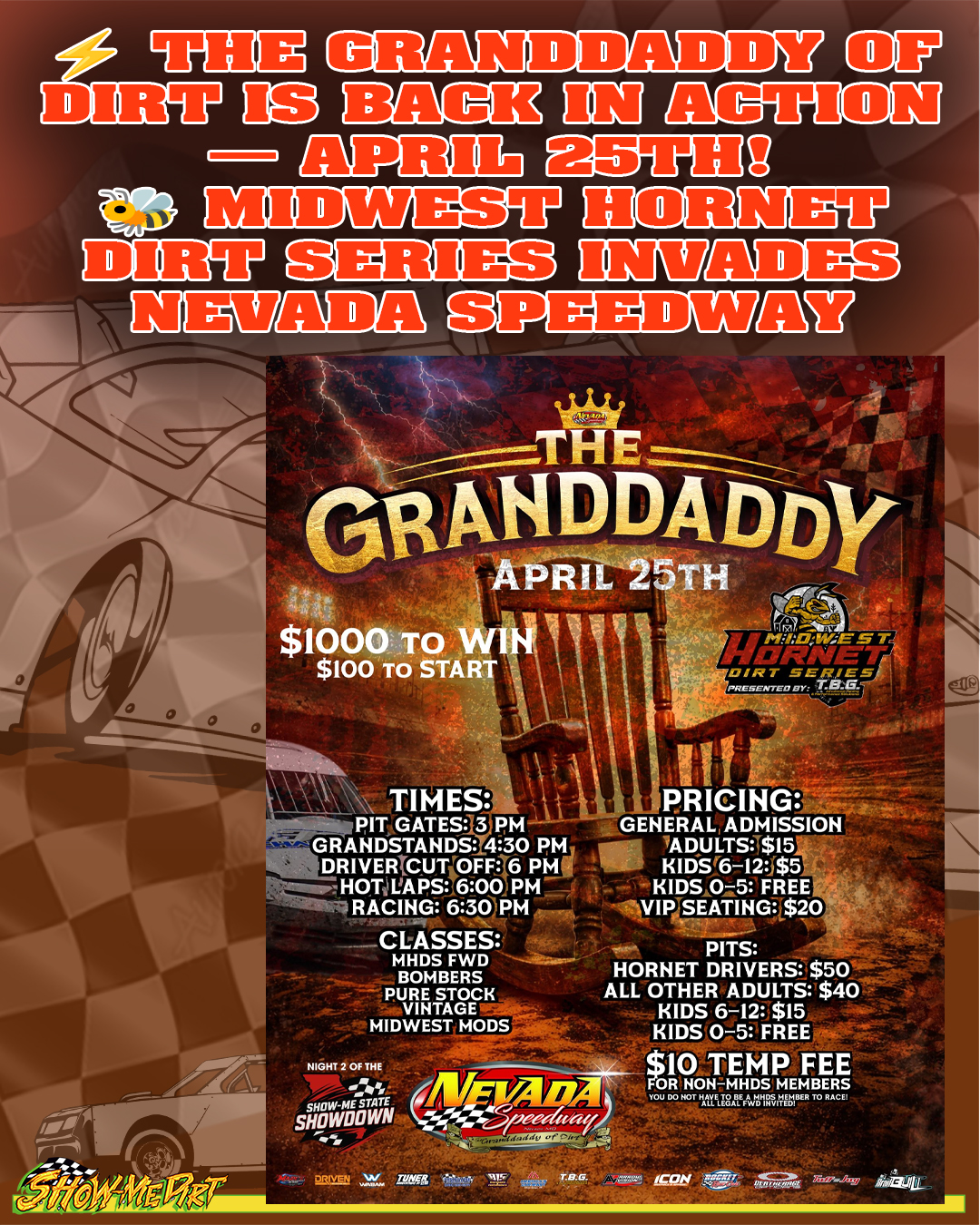 🏁 THIS SATURDAY, APRIL 25TH β€” The Midwest Hornet Dirt Series invades Nevada Speedway! 🏁