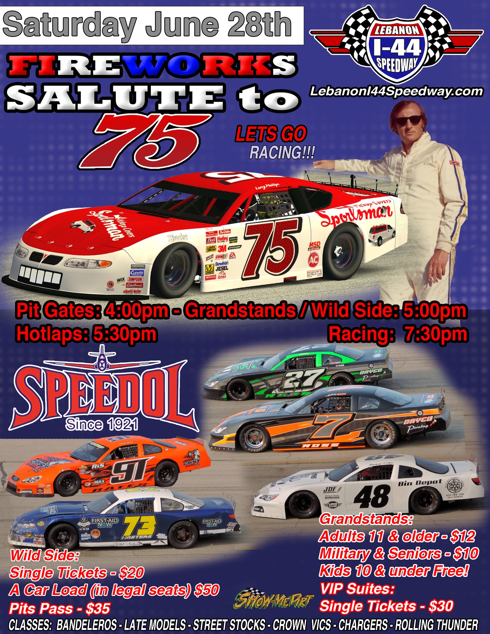 This Saturday at the Lebanon I-44 Speedway come out for the Salute to 75 with Drift cars at intermission and a fantastic FIREWORKS show.
