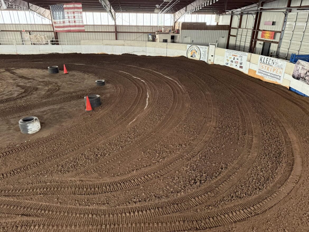 Track rework under way here at the Kansas Indoor Kart Nationals.