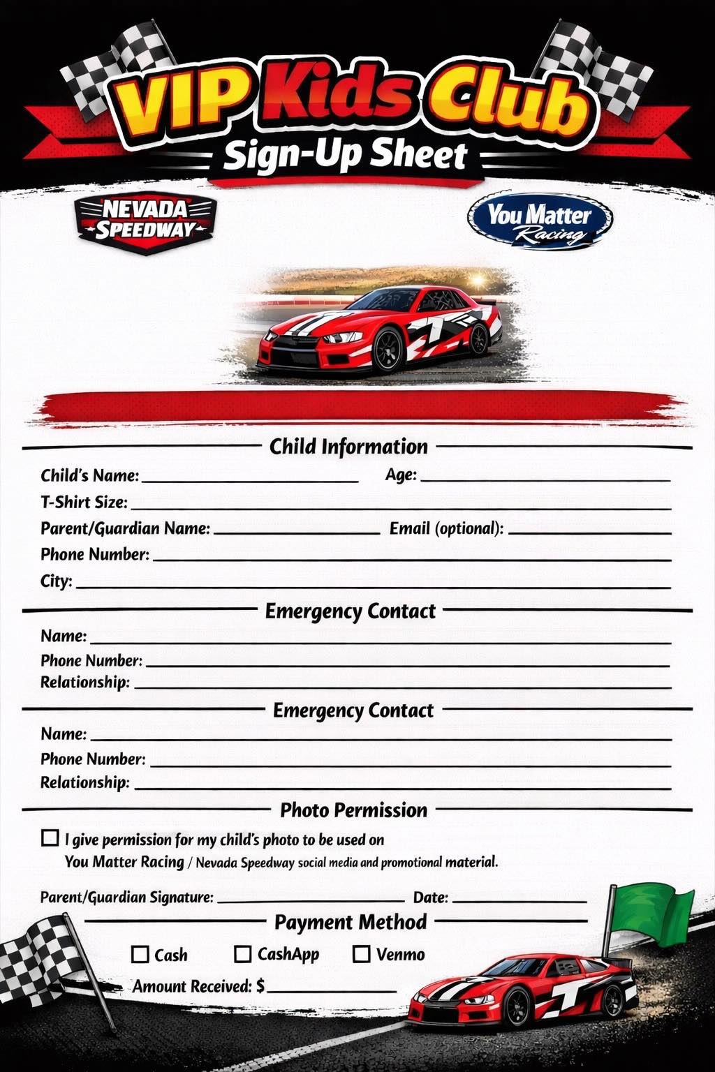 VIP KIDS CLUB Presented by Nevada Speedway & You Matter Racing We are so exci…