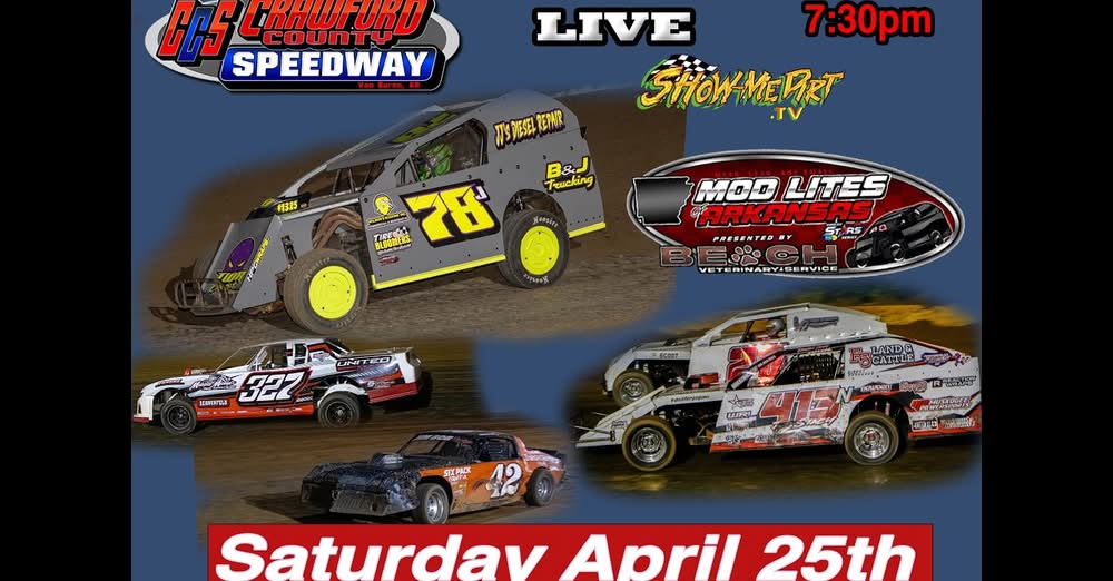 We will be live This Saturday at the Mod Lites of Arkansas, Weekly Racing at Crawford County Speedway 04/25/2026!!!!